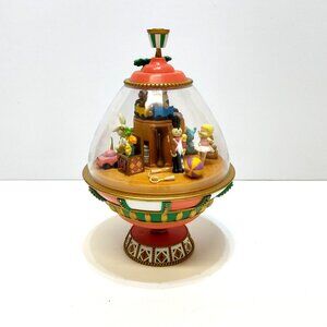 This charming 1994 House of Lloyd "Twirl Top Toy Shop" is a delightful animated musical treasure. With enchanting details like a spinning ballerina, rocking horse, and a moving train, it plays the timeless melody "It's a Small World." A collectible piece that evokes nostalgic holiday memories through its intricate craftsmanship.