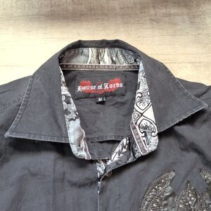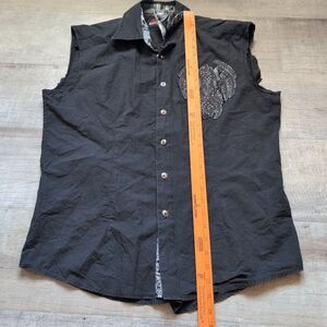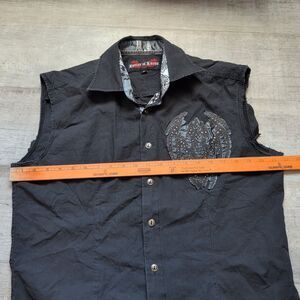 House Of Lords Vest Mens M Black Y2K Grunge Embroidered Studded Goth Button Up