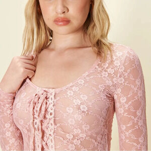House Of Sunny Love Lace Bodysuit in Blush Pink