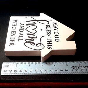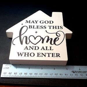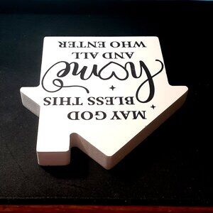 House Shaped Wood Block: May God Bless This Home and All Who Enter - Lot of 2