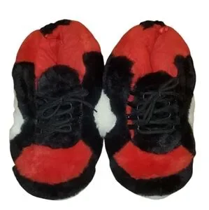 House shoes shape into a gym shoe. Can be wore by who ever (Unisex) red, white and black very cute and super cushion in the inside.