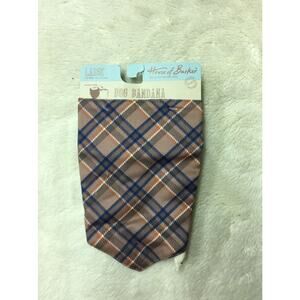 Tie one on with this House of Barker Bandana. With an elegant tartan pattern on one side and solid color on the reverse, your Barker can personalize his accoutrements.