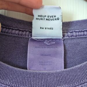 VTG and straight out of the 90s - This graphic tee features short sleeves, a ribbed crewneck, and a classic fit. It is purple in color with white and gray text on the front chest that says House of Blues Las Vegas, the upper back has an illustration of harmonicas with additional text that says Where the heart meets the soul. It is soft, lightweight, and comfortable. Pair with jeans and sneakers for a classic, retro look! High quality!