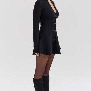 House of CB AUBREY Black Wool Knitted Cardigan Dress