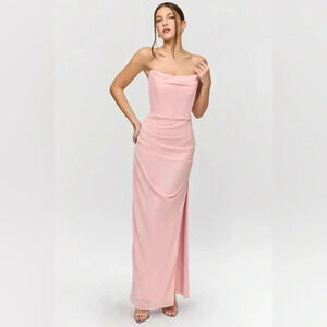House of CB Adrienne Pink Quartz Georgette Strapless Gown Maxi