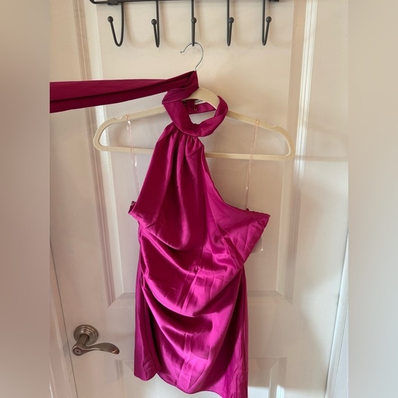 House of CB Aida HOT PINK ASYMMETRIC WRAP NECK DRESS size small