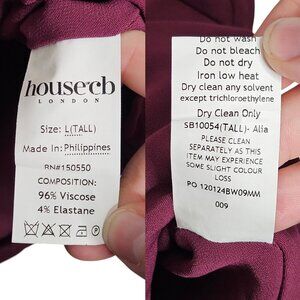 House of CB Alia Mulberry Red Purple Short Sleeve Mini Dress Size L Tall