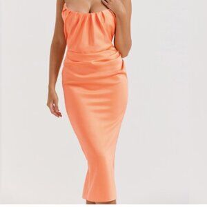 House of CB Alora Tangerine Strapless Corset Midi Dress - XS