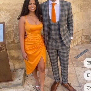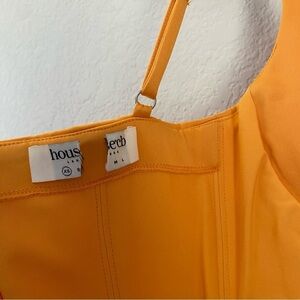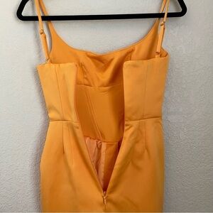 House of CB Bianca Tangerine Satin Pleated Corset Midi Dress orange size XS NWOT