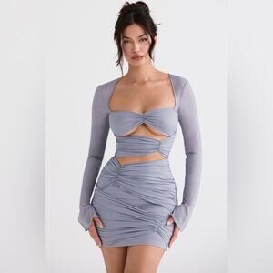 House of CB Camille Dove Grey Real Silk Mini Dress M