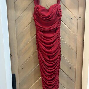 House of CB Carlotta Wine Ruched Draped Chiffon Dress