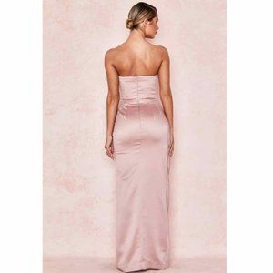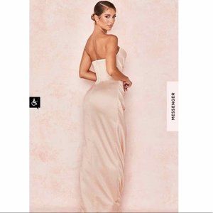 It's all about feminine tones and languid, sexy drapes with 'Adrienne'. Cut from our ultimate quality duchess satin it drapes sexily across the bust and cinches the waist. The internal structure is specially boned for ultimate lift and support and the corsetry continues through the the back. The long skirt drapes asymetrically over the hips and the hem dramatically sweeps the floor.