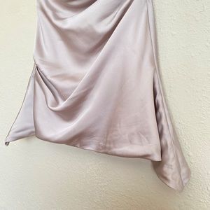 Elegant strapless mini dress. Asymmetrical hem. Perfect for evening events. Wine stain on front of dress. Reduced prices to reflect that.