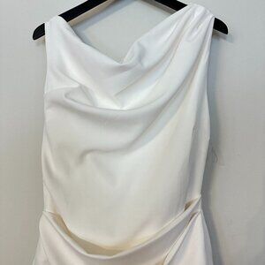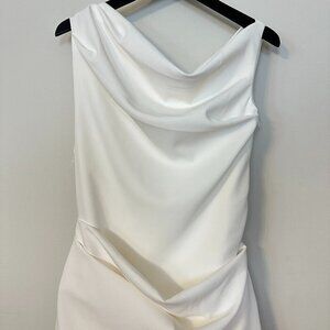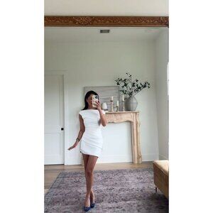 Elegant off-shoulder mini dress. Features a sleek, fitted design. Perfect for any occasion.