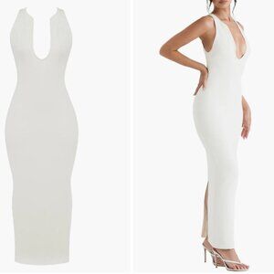 House of CB Eleanora Ivory Plunge Maxi Dress L+/XL