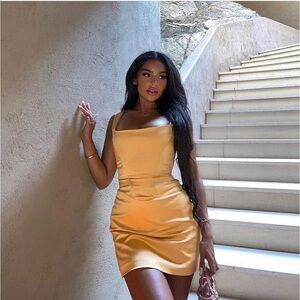 'Enya' is sure to be your most wanted mini this season. Cut from our luxurious duchess satin, 'Enya' has a minimal yet ultra chic design and features a flattering square neckline, held by wide straps and the slim fit is supported by a corseted bodice to contour your waist.