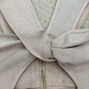 House of CB Ermina Top, women’s size medium! Rose gold color with some sparkle, front cutout, back zip closure, stretchy.