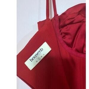 House of CB FLORA Satin Pleated Corset Midi Dress in Wine Size Small