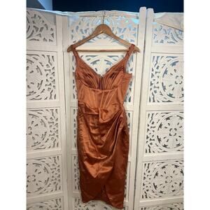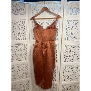 House of CB Faye Rose Satin Pleated Midi Dress Size S Small