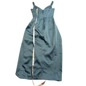 Description from retailer: Our 'Faye' dress is equally feminine and flattering with a touch of elegance. Made from our ultra luxe duchess satin in a beautiful blue tone, 'Faye' has a plunging neckline with pretty petal shape pleated cups, framed by slim straps. The bodice has our special corsetry boning to ensure the utmost support and gives the bust a volumising lift for the ultimate cleavage. The internal layer is lined in a stretch woven fabric for a non slip hold.