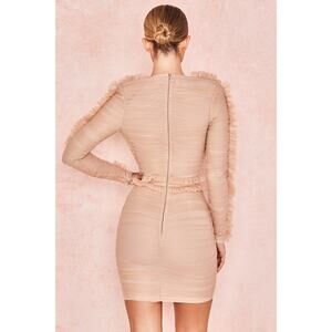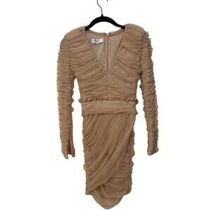 House of CB Fleur Blush Pleated Tulle Deep V Mini Dress Size XS