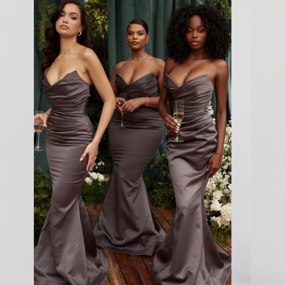 House of CB Fleur SHADOW SATIN STRAPLESS GOWN corset gray maxi dress size M NWOT