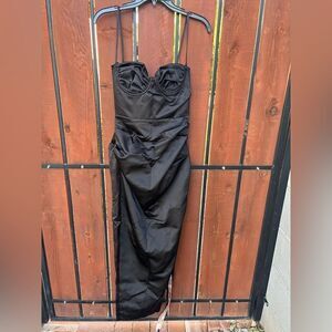 House of CB Flora Black Satin Pleated Corset Midi Dress size small Plus cup