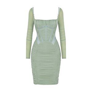 House of CB Freyja Gathered Corset Dress Size M Sage Green Mesh & Satin