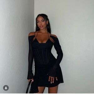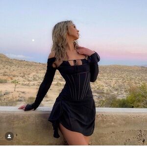 Bold cutouts and a boned bodice lend corset-style inspiration to this figure-hugging body-con dress made from a lustrous Mulberry silk blend.