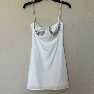 House of CB 'Grace' embellished velvet white mini dress NWOT size M