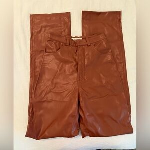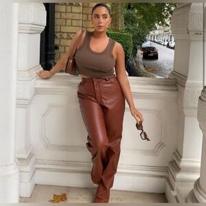 House of CB Inaya High Waist Faux Leather Pants Tan Brown XS