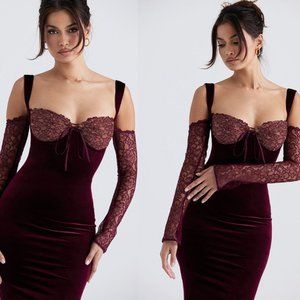 House of CB ‘Ivy’ Black Cherry Velvet Gown NWOT