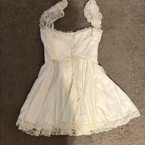 This elegant cream nightgown features delicate lace trim for a touch of sophistication. Perfect for a comfortable and stylish night's sleep.