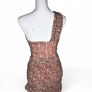 Never worn – no tags. Originally $200 from House of CB. One-shoulder bodycon mini dress in a ruched leopard mesh. Super flattering with stretch. Perfect for a night out, date night, or vacation vibes. Sold out online!