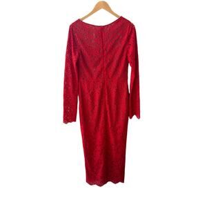 House of CB Lisandra Lace Maxi Dress Red Trim Cutout Long Sleeve Large NWT
