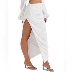 Cut from a lightweight textured linen blend, this ultra chic gathered skirt is the perfect mix of elegant and sexy with its figure skimming fit and side split that parts beautifully as you walk.