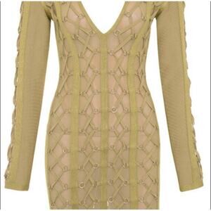 House of CB London Bandage Chain Dress Feodora Long Sleeve In Golden Size XS NWT