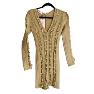 House of CB London Chain Bandage Feodora Dress Long Sleeve Gold Size XS NWT