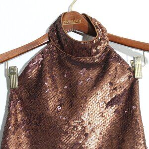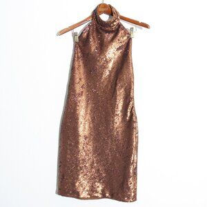 House of CB London Dacia Bronze Sequin Mini Dress Backless Halter High Neck Med