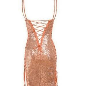 House of CB London Harley Lace Up Sequin Cocktail Mini Dress In Rose Gold
