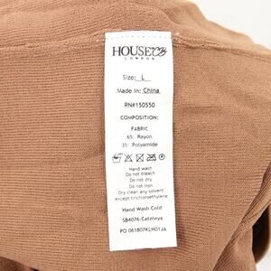 House of CB London Maxi Dress Tan Nude Ribbed Long Sleeve Slit Scoop Neck Large