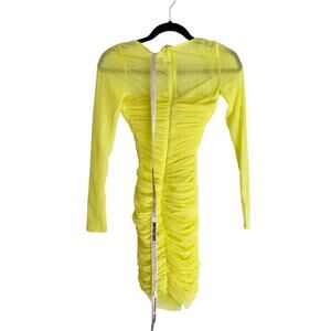 House of CB London Valentina Chartreuse Ruched Mesh Dress Yellow Size XS NWT