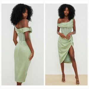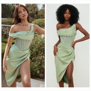 House of CB Lulu Asymmetric Drape Midi Corset Dress in Pistachio size S NWT