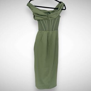 House of CB Lulu Drape Satin Boned Corset Pistachio Green Midi Dress Size XS