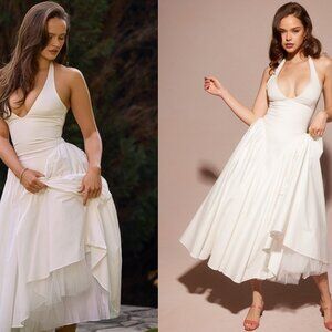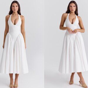 House of CB 'Marilyn' White Cotton Halter Midi Sundress NWOT