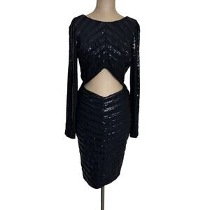 House of CB Black Sequin Long Sleeve Low Back Mini Dress size Small
