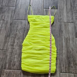 House of CB Mini Dress Women’s XS Ella Ruched Organza Mesh Neon Green Club Party