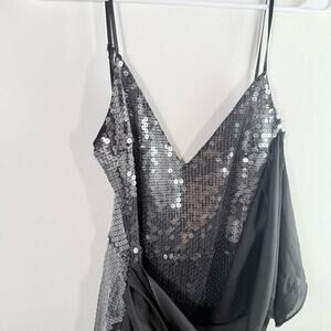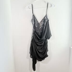 House of CB Mistress Rocks Grey & Silver Layered Sequin Mini Dress Small