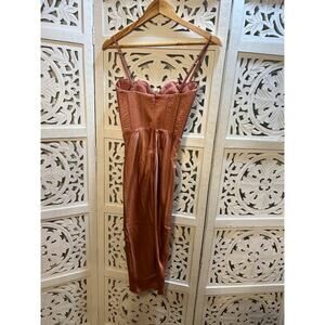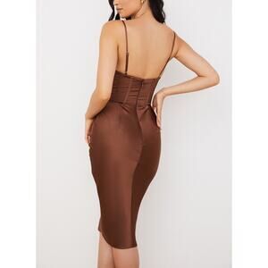 House of CB Myrna Chocolate Satin Corset Slip Midi Dress Size XS Extra Small