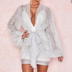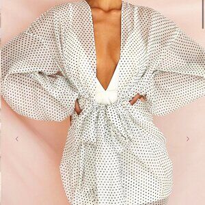 House of CB Nezrin Polka Dot Blouson Sleeve Wrap Dress (chiffon piece only)